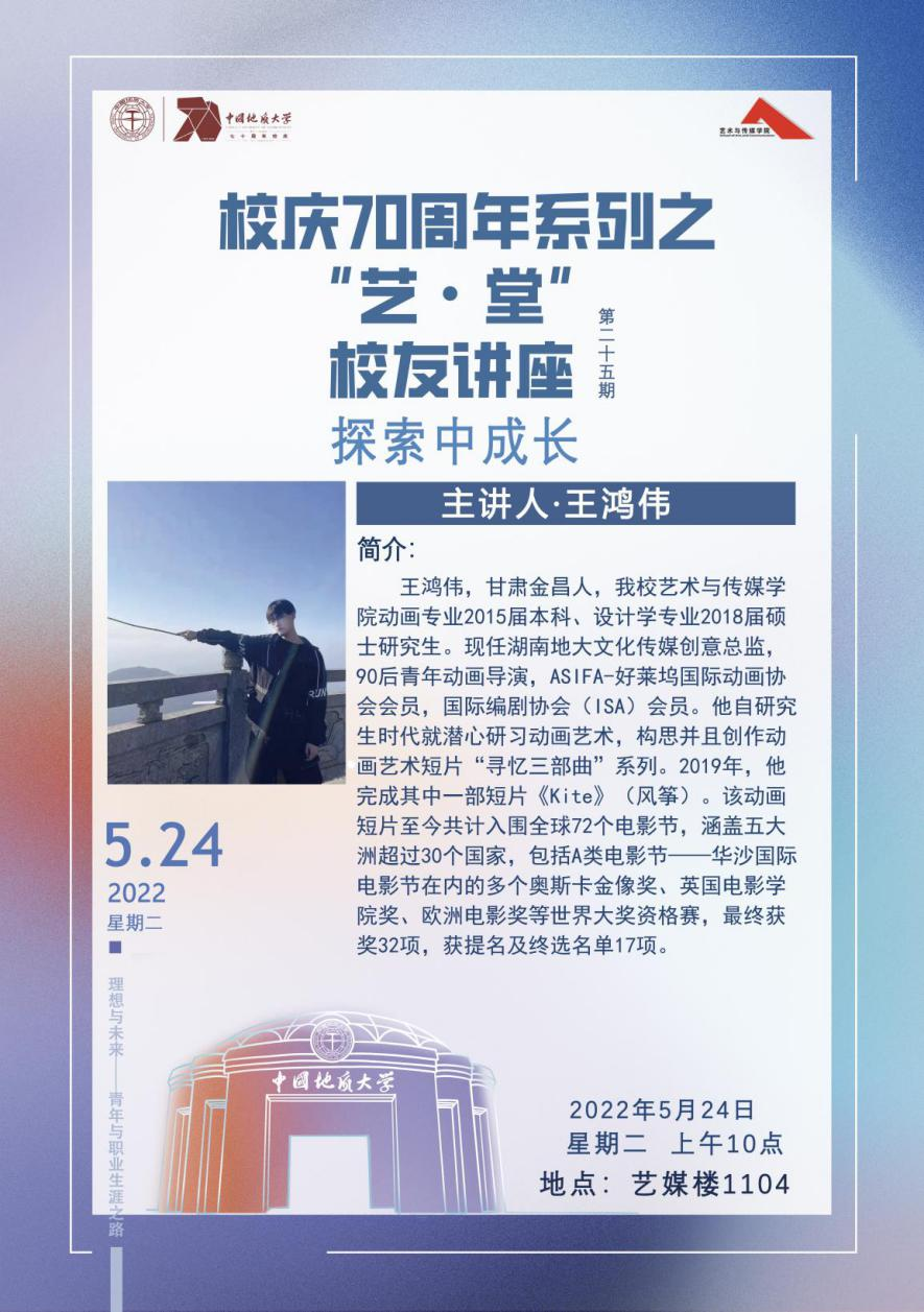 (通讯员 赵书楠)5月24日上午10点,402永利集团官网入口在艺媒楼1104报告厅组织召开了校庆70周年系列之第二十五期“艺·堂”校友讲座。公司优秀校友王鸿伟做了主题为“探索中成长”的讲座分享。本场讲座由党委副书记边建华主持。