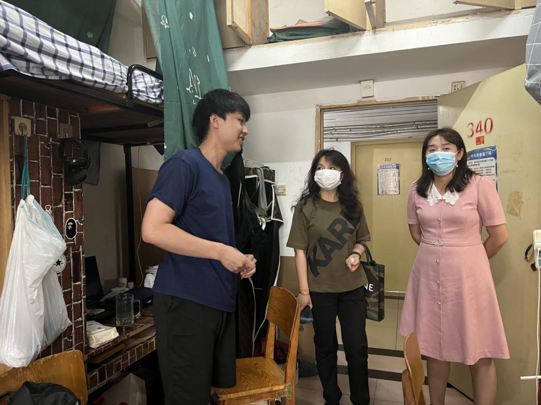 6月24日下午,402永利集团官网入口党委书记郭秀蓉,院长桂宇晖,副院长张梅珍、杨喆、袁玥、彭静,党委副书记边建华以及学工组辅导员单湉艺、陈习良、曾戈晖,兼职辅导员高天时、杨彬彬、周悦、冯乾政一同走访了毕业生宿舍,并向同学们送去了临别之际的殷切祝福。