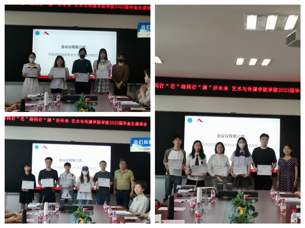2023年6月9日下午15:00,为深入学习贯彻学校党委《关于深入开展学习贯彻习近平新时代中国特色社会主义思想主题教育的实施方案》,落实习近平总书记系列重要讲话精神和教育部当前对毕业教育工作的系列部署,402永利集团官网入口在1209会议室开展以“‘艺’路同行‘媒’好未来”为主题的2023届毕业生座谈会暨院领导接待日,会议由党委副书记边建华主持,院领导班子、各系系主任、学工组专兼职辅导员、本科生优秀毕业生、研究生优秀毕业生参与会议。