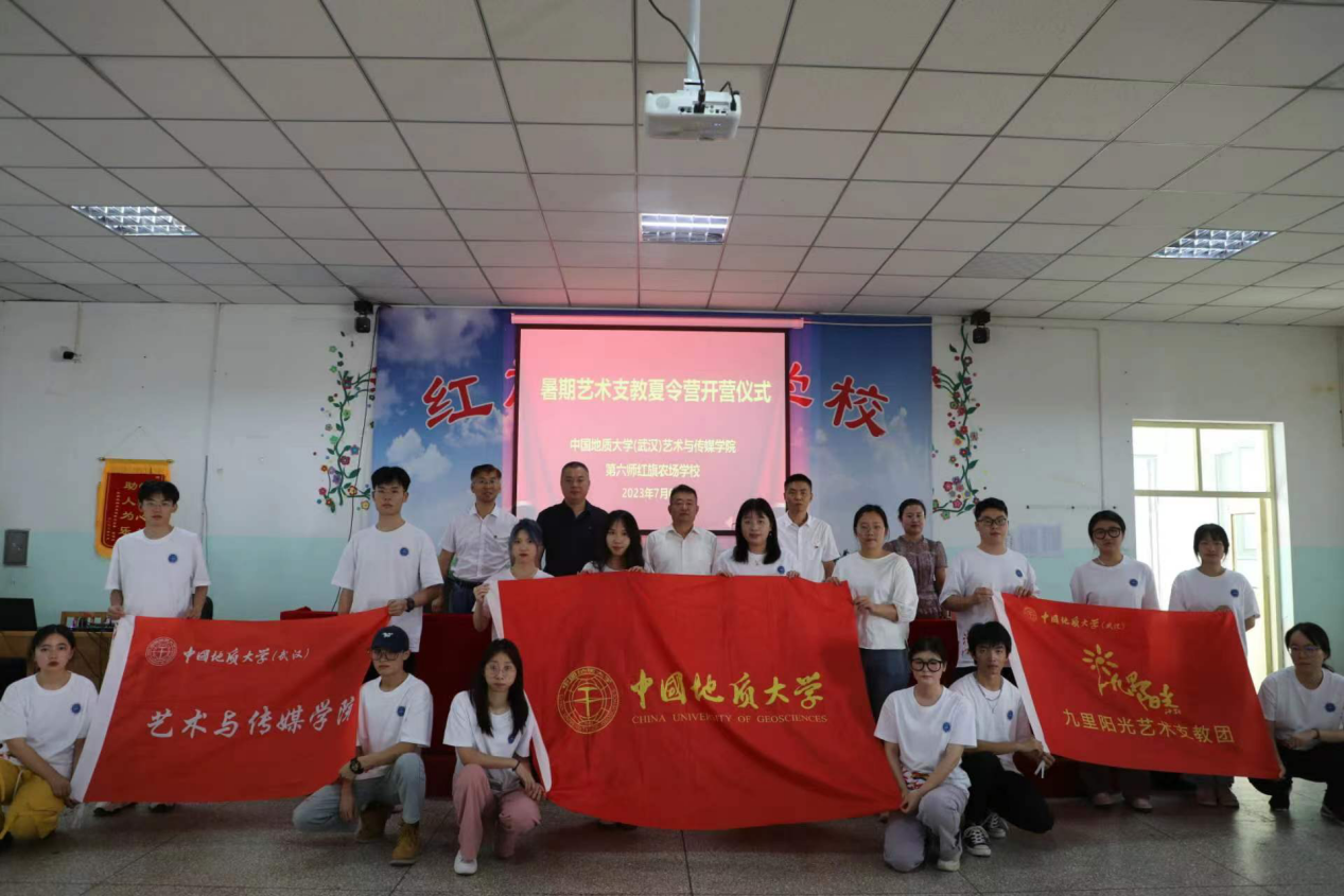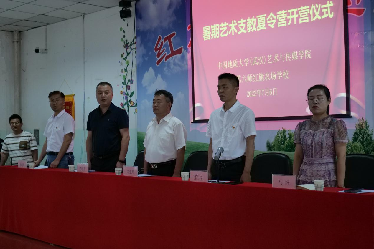 7月6日,402永利集团官网入口九里阳光艺术支教团红旗农场艺术夏令营开营仪式在新疆生产建设兵团第六师红旗农场学校顺利举行,红旗农场党委常委、纪委书记徐生辉,402永利集团官网入口党委副书记边建华,红旗农场学校党支部书记、校长张守宪,副校长王尚涛、马艳,九里阳光艺术支教团全体成员以及红旗农场学校的师生代表参加本次开营仪式,活动由副校长王尚涛主持。