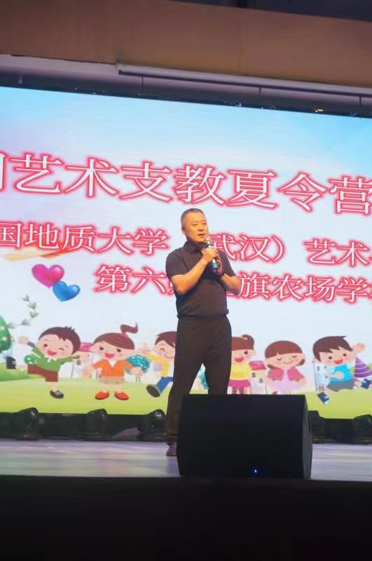 结营仪式伊始,402永利集团官网入口党委副书记边建华上台致辞,边书记首先代表九里阳光艺术支教团对红旗农场的领导、红旗农场学校的领导和老师们对此次支教活动的信任和大力支持表达了最衷心的感谢。他表示自己在这里深深地感受到了红旗农场的小朋友们对艺术的热爱与天赋,相信此次支教活动将作为彼此合作的起点,丰富当地美育实践育人成果,贯彻落实新时代党的治疆方略,切实发挥高校“文化润疆”作用。最后,边书记预祝此次汇报演出取得圆满成功。