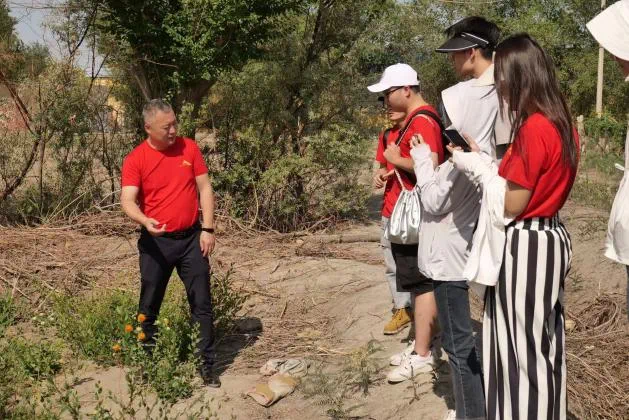 党的二十大报告指出,弘扬以伟大建党精神为源头的中国共产党人精神谱系。兵团精神是中国共产党人精神谱系的重要组成部分,是对伟大建党精神的继承和发扬,是兵团人的精神丰碑。为贯彻落实习近平总书记视察新疆和兵团重要讲话和指示精神,支教活动期间,九里阳光艺术支教团在学院党委副书记边建华的带领下实地感受了支教地点附近的自然环境,了解了新疆兵团独特的地域风貌与风土人情。70多年间,一代代兵团人工作生活在风头水尾、沙漠边缘、边境一线,孕育和丰富了以“热爱祖国、无私奉献、艰苦创业、开拓进取”为主要内涵的兵团精神。惟其艰难,才更显勇毅,实地的走访让支教团成员加深了对兵团精神的理解与感悟,而这份精神信仰也将鼓励着他们秉持“艰苦朴素,求真务实”的初心在未来继续砥砺奋进,争做担当起民族复兴大任的时代新人。