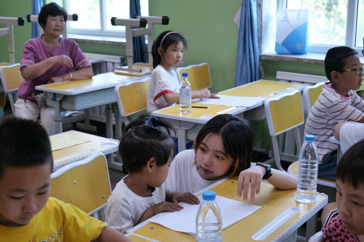 在本次支教活动中,志愿者面向红旗农场140余名参加艺术夏令营的同学们开设了音乐课(包括电子琴和合唱)、美术课(包括绘画和手工)以及舞蹈课,教小朋友们如何打节拍、看音符、找节奏、学配色等,一笔一画、一颦一笑间尽显孩子们对艺术的热爱。在课程教学结束后,志愿者们带领孩子们在红旗农场大剧院为观众共同呈现了一场主题为“红旗在我心,‘艺’路向前行”的结营汇报演出。舞台上,无论是款款深情的合唱还是慷慨激昂的诗朗诵,抑或是整齐划一的舞蹈,孩子们用动人的歌声、投入的表情、优美的舞姿展示着艺术潜力和学习成果,文艺演出赢得了台下观众一阵阵的掌声和喝彩声。