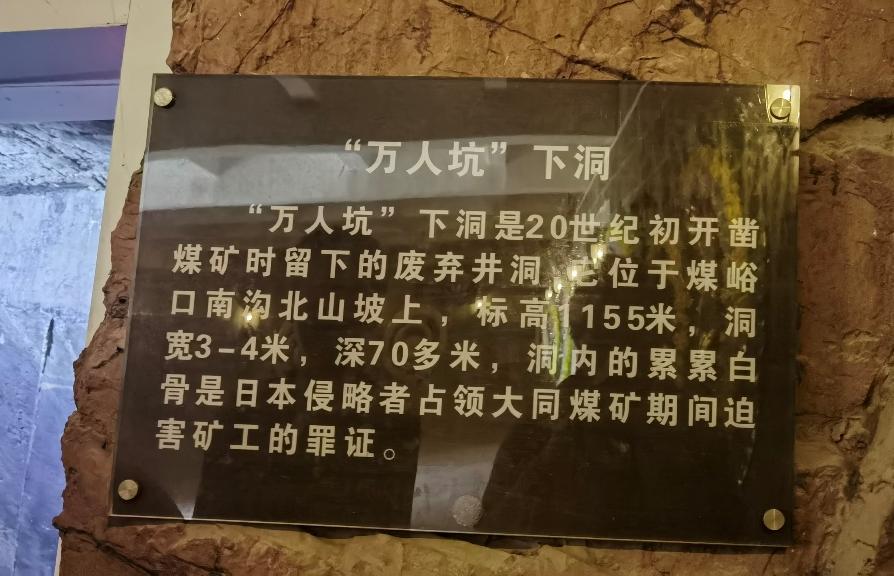 团队在简单了解万人坑的背景历史后,怀着沉重的心情,开启了对大同煤矿万人坑遗址纪念馆的学习调研活动。大同煤矿万人坑遗址纪念馆整体分为“游客服务中心”,“纪念馆”,“万人坑遗址”三个部分。首先我们在游客大厅对负责人进行了采访,负责人向我们大同煤矿万人坑遗址纪念馆的基本情况,并基于纪念馆闭馆装修的特殊情况,负责人还为我们讲解了一些案例,讲述了1937年日军侵占大同期间,日本侵略者“以人换煤”,残酷掠夺煤炭1400余万吨,从山东、江苏、河南、安徽、河北等地抓夫骗人到大同煤矿当劳工。矿工在条件极其恶劣的矿井下,每天服苦役十几个小时,在日本法西斯统治下,导致六万多劳工被折磨而死的惨痛经历。