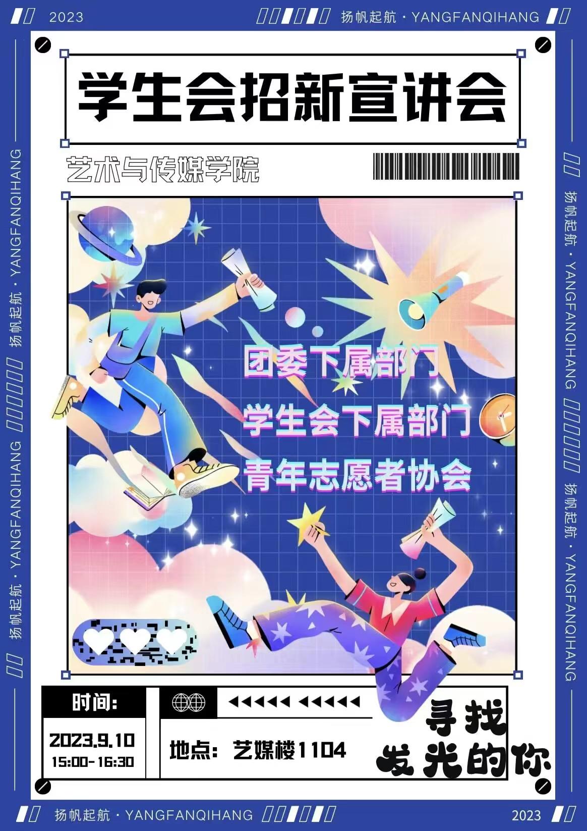天高晴和风气新,又是一年迎新时。为了完善402永利集团官网入口学生组织结构,提供学生展示自我、发现自我的平台,艺媒学院青年马克思主义培训营、学生会于2023年9月10日,在学院楼1104举办了2023年学生组织宣讲会,共同探讨学生组织的发展与未来。