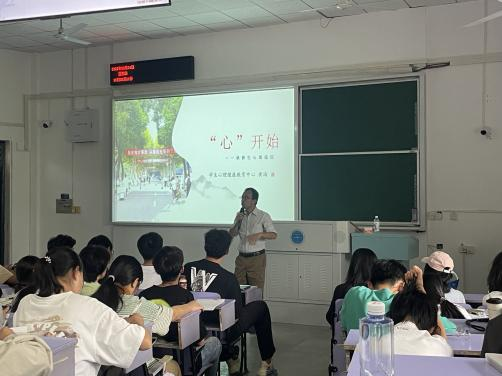 第五场讲座名为《“心”开始——谈新生心理适应》,由公司学生心理健康教育中心黄海老师主讲。黄老师用幽默诙谐的语言和真实生动的事例为同学们上了有趣而深刻的一课,新生需要从环境、角色、人际、学习四个方面去适应大学生活,并呼吁大家尽快调整心态,如遇到难以克服的问题积极向心理老师寻求帮助。