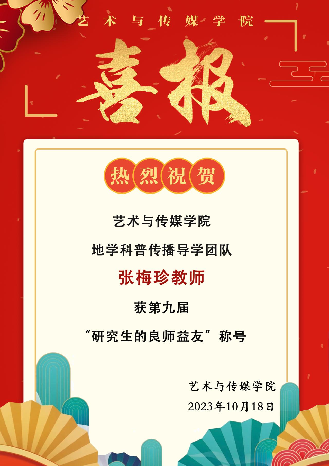 喜报 | 热烈祝贺公司张梅珍教师荣获第九届“研究生的良师益友”称号