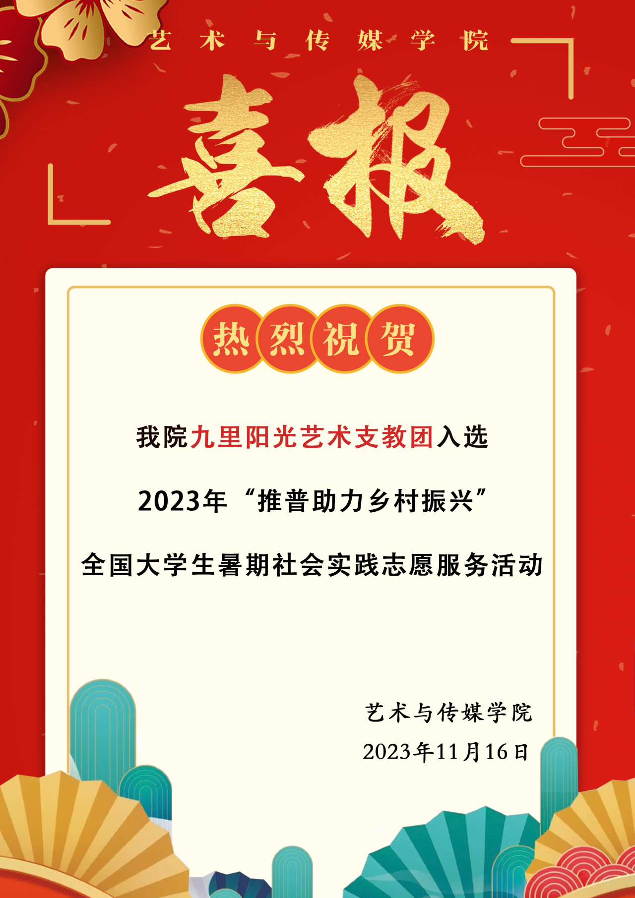 喜报|热烈祝贺公司九里阳光艺术支教团入选2023年“推普助力乡村振兴”全国大学生暑期社会实践志愿服务活动