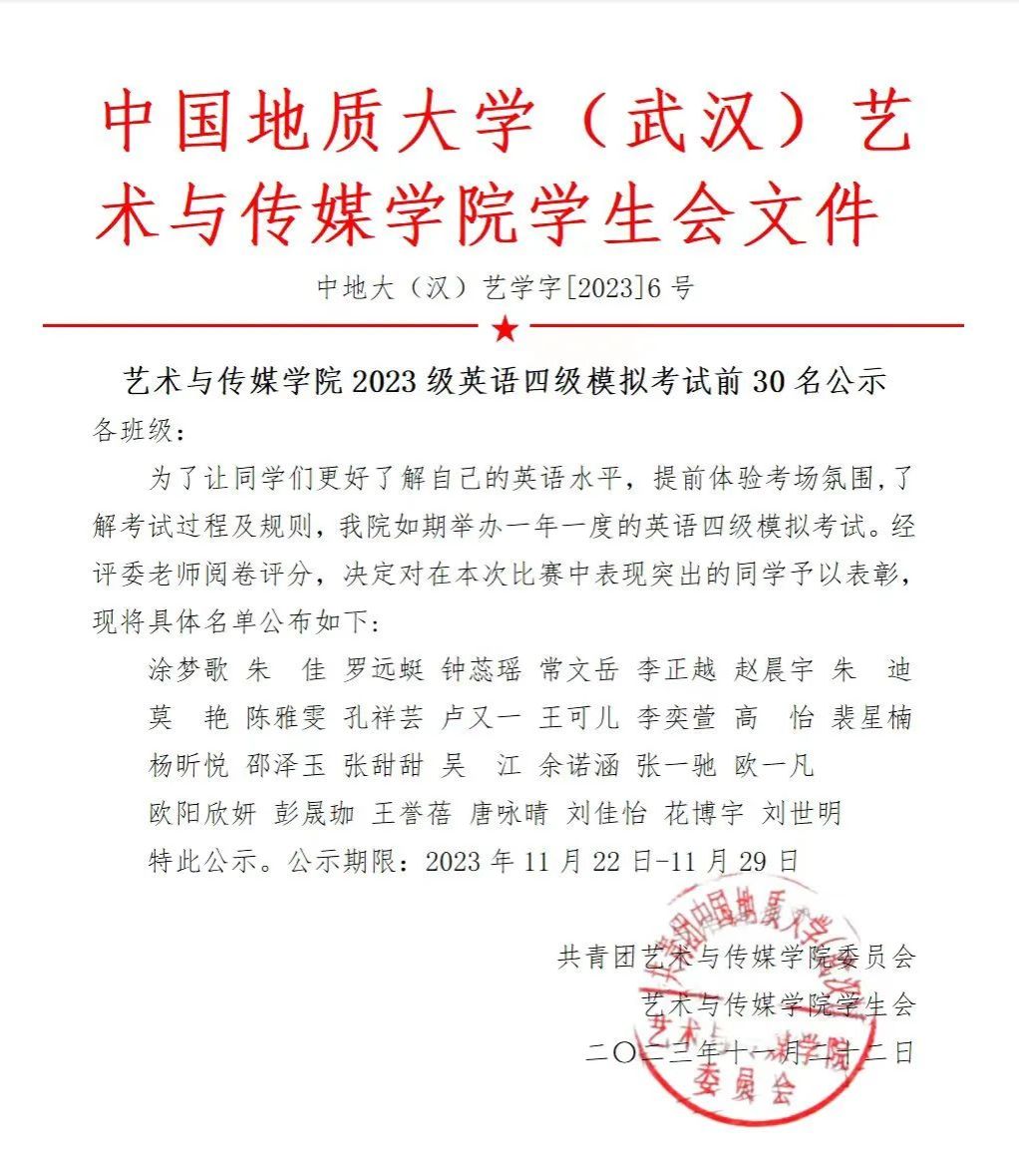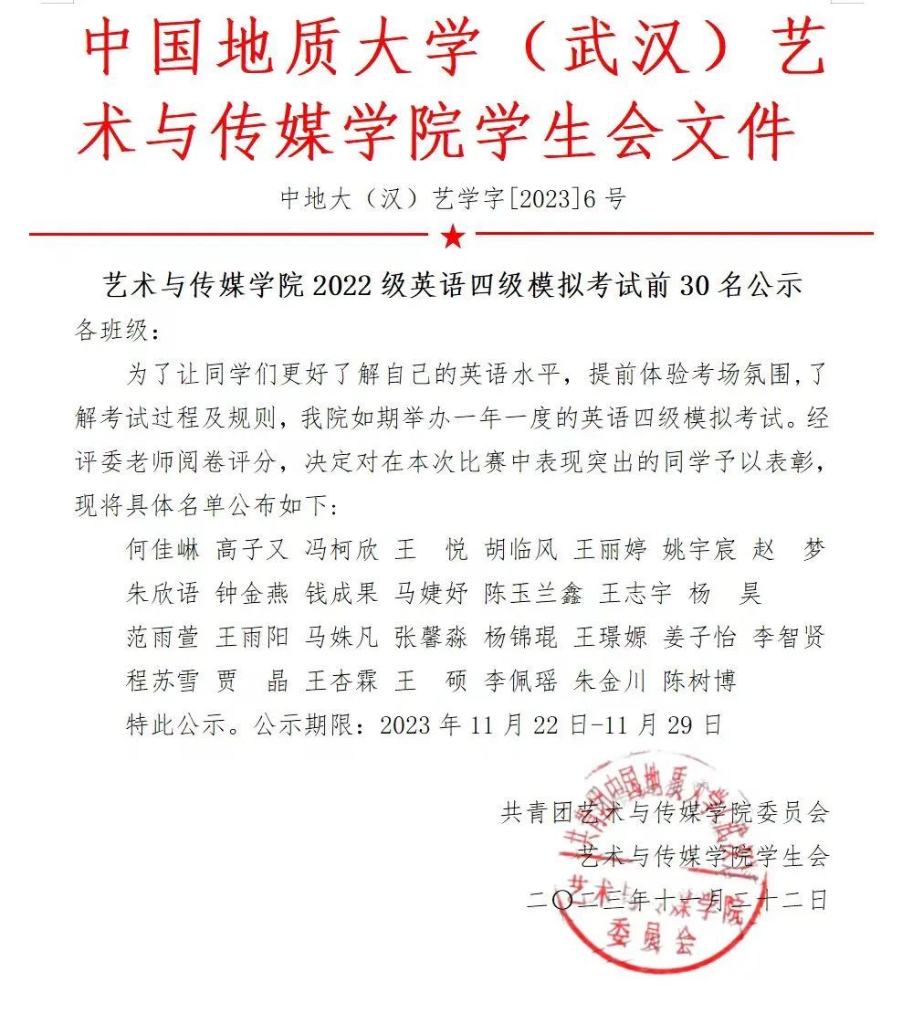 公示 | 402永利集团官网入口英语四级模拟考试前三十名公示