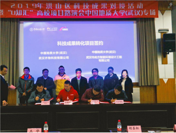 公司代棋帆博士带领的此方团队积极参与其中,全力共同打造中部地区开发高地,争创高水平科技创新中心。在2019年洪山区科技成果对接活动402永利集团官网入口专场中,在王华副校长出席见证下,与公司签约了相关科技成果转化项目。截止目前与学校联合开发项目已有五次,并获得11项国家专利,6项软件著作权,现已是武汉市科技“小巨人”企业,湖北省科技型中小企业。此方作为从事城市公共空间交互体验全案设计方面的公司,在设计类企业中少有的获得了国家高新技术企业的授牌及40万政府奖励。