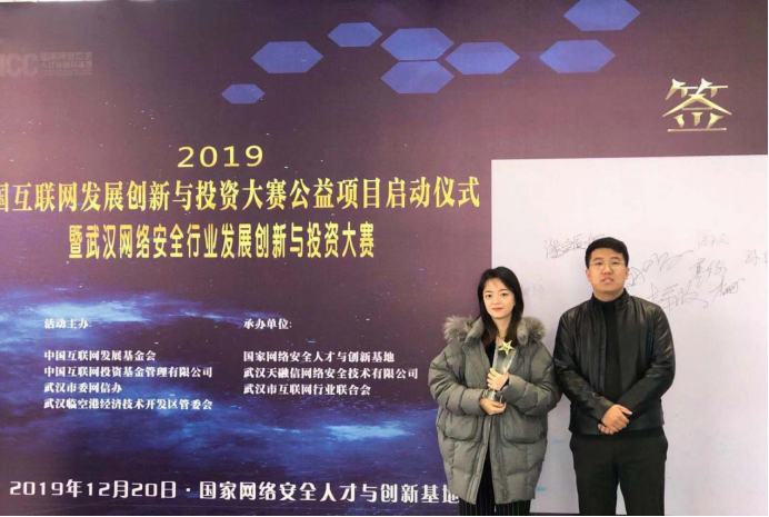 2019年12月20日上午9:00由中国互联网发展基金会、中国互联网投资基金管理有限公司、武汉市委网信办、武汉临空港经济技术开发区管委会共同主办的“首届中国互联网发展创新与投资大赛”启动仪式暨武汉网络安全行业发展创新与投资大赛于在武汉东西湖区国家网络安全人才与创新基地展示中心举办。经过层层评选,共选出10家获奖企业。由公司代棋帆博士为负责人的此方智能环境设计工程有限公司荣获优秀奖。来自中国互联网和网络安全行业的领导、专家为企业颁奖并合影留念。