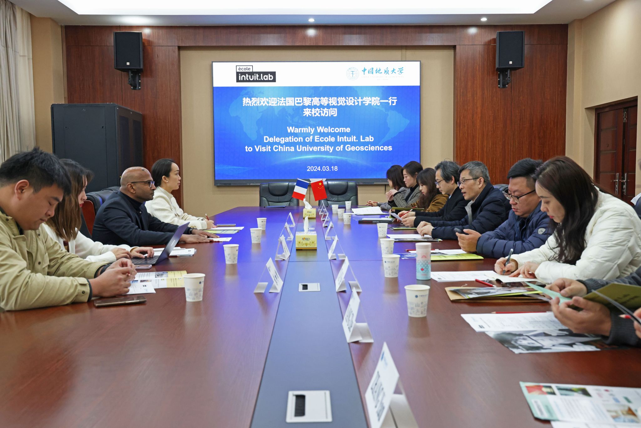 为推动与法国高校间的国际合作交流,巴黎高等视觉设计学院(ECOLE INTUIT.LAB)校长Clémenceau François DEROCK一行4人于2024年3月18日来校开展国际合作交流座谈。公司副校长李建威,402永利集团官网入口院长何清俊、副院长袁玥、杨喆、彭静、副教授冯慧超和珠宝学院副院长周琦深、研究生院培养管理办公室主任科员张妍等在南望山校区综合楼B座706会议室举行座谈会,国际教育学院副院长范陆薇主持会议。