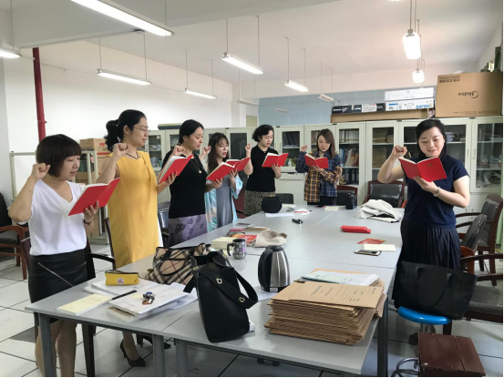 五个教师党支部按照规定动作要求,集体唱国歌、重温入党誓词、学习党章并缴纳了党费。通过观看教育视频、主讲人PPT讲解、个人结合工作发言等多种形式对本次主题进行了学习交流,大家积极参与讨论、交流体会、分享感悟。