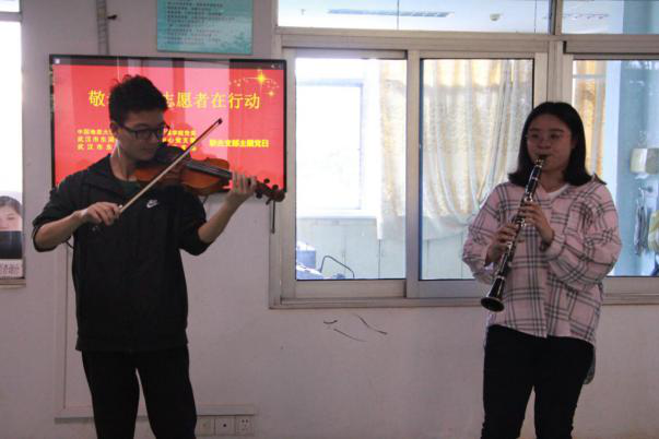 最后,院直党支部的老师为老人们送去了事先精心准备好的剪纸,并衷心祝愿老人们能健康长寿,平安快乐。院直党支部书记李伟娜介绍说,此次慰问演出准备充分,音乐专业的党员师生很早开始排练,院直党支部的老师们也提前学习剪纸,大家都希望能为医院的老人们奉献一场精彩的演出。