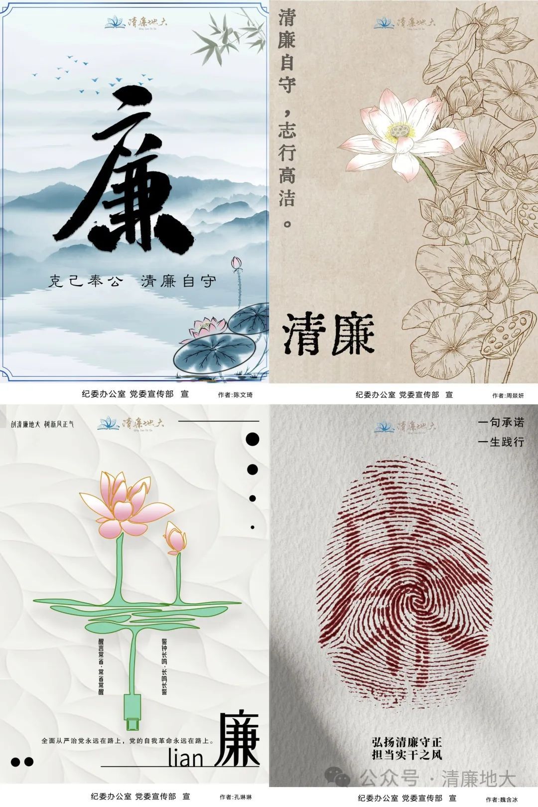 与此同时,公司纪委办公室和党委宣传部遴选了一批由学生设计的廉洁文化作品,印制成宣教海报,张贴在教学楼、图书馆、学生宿舍等场所。据悉,2022年9月至10月,公司举办了首届廉洁文化宣传设计大赛,引导鼓励师生将廉洁文化“从心间画到笔尖”。比赛累计收到师生原创作品300余件,最终精选出70件作品集结出版《画说清廉——清廉地大文创作品集》。此次的宣教海报素材就来源于此。