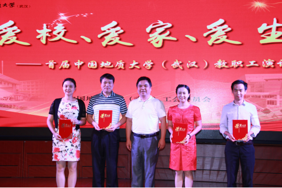 按照抽签顺序,公司代表队最后一个登场,四位老师集体朗诵了由熊程老师创作的诗歌作品《地大人的歌》,四位老师时而娓娓道来,深情饱满;时而慷慨激昂,激情澎湃,将艺媒学院教职工对地大的爱诠释的淋漓尽致,引得现场评委及观众阵阵掌声。