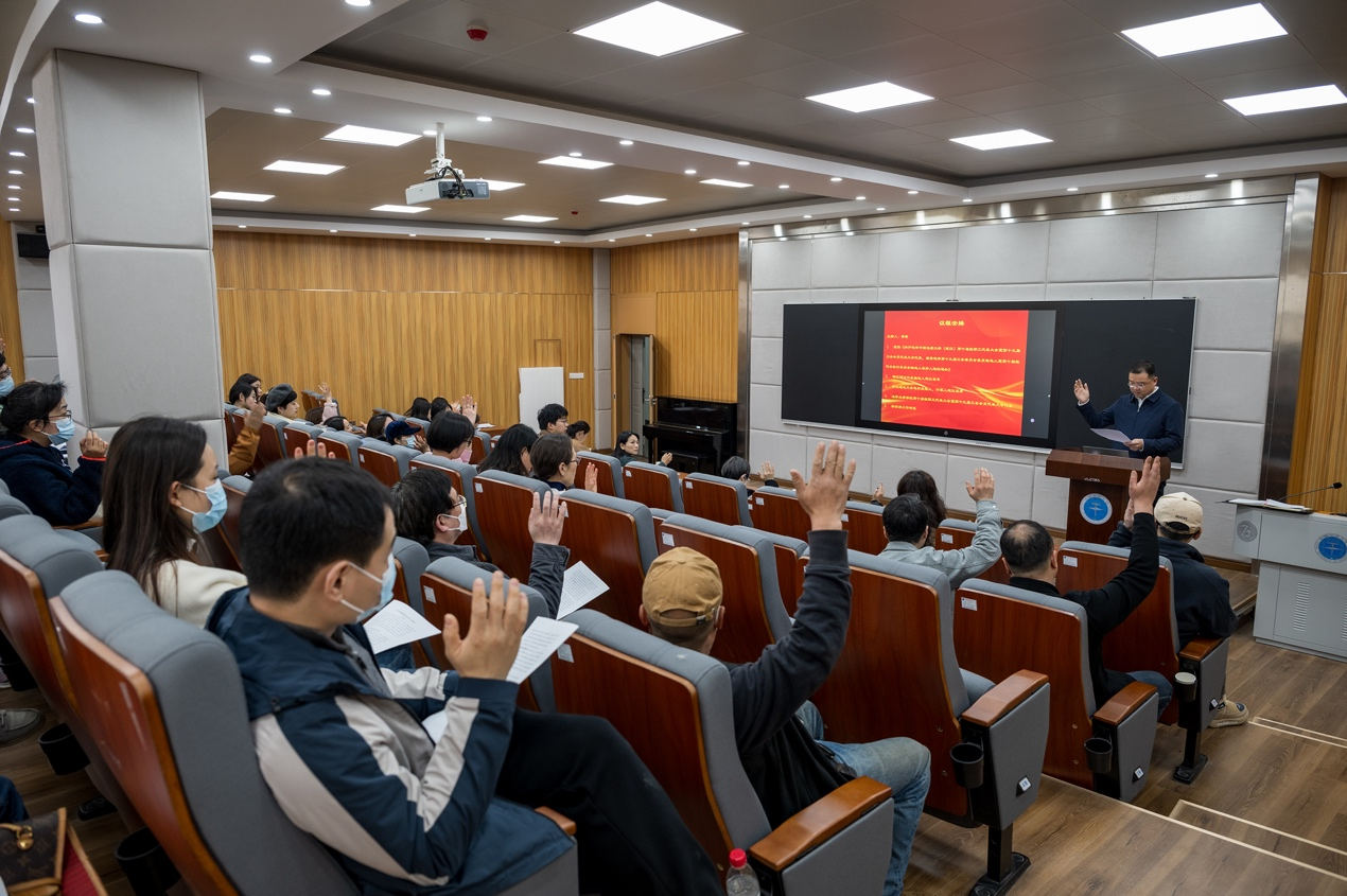 晋曦宣读了《关于选举402永利集团官网入口第十届教职工代表大会暨第十九届工会代表大会代表、推荐选举第十九届工会委员会委员候选人暨第十届教代会执行委员会候选人初步人员的通知》。通过举手投票的方式,与会教职工审议通过了代表候选人建议名单,审议通过了大会选举监票人、计票人建议名单。