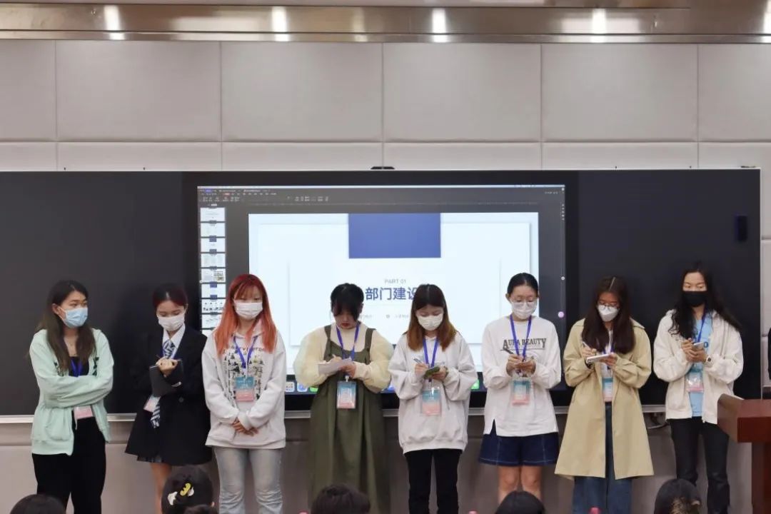 第一个答辩部门为体育部,向大家介绍了体育部以“积极活泼乐观、公平公开公正”为宗旨开展的包括秋季运动会、跳绳比赛等的相关工作,并就这些活动的开展流程与部员分工安排进行了介绍,并表示体育部未来将会更加守正创新,追求卓越,举办更多强身健体的活动。