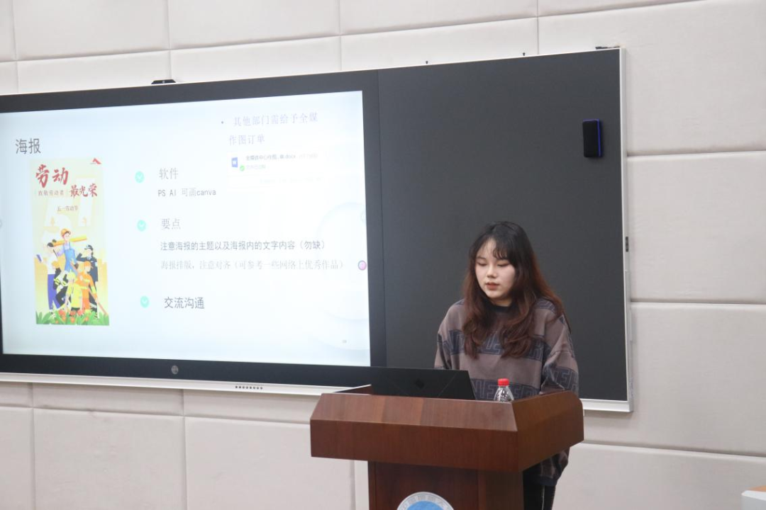 首先是体育部的分享,部长蒋欣玥介绍了体育部的部门架构,部门内部主要活动、例会等,以及如何明确主体确定方案、海报、宣传、进行总结等。