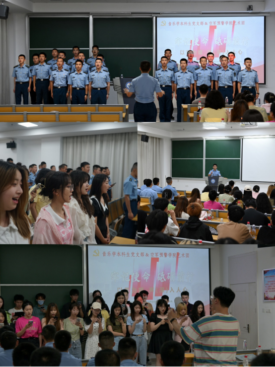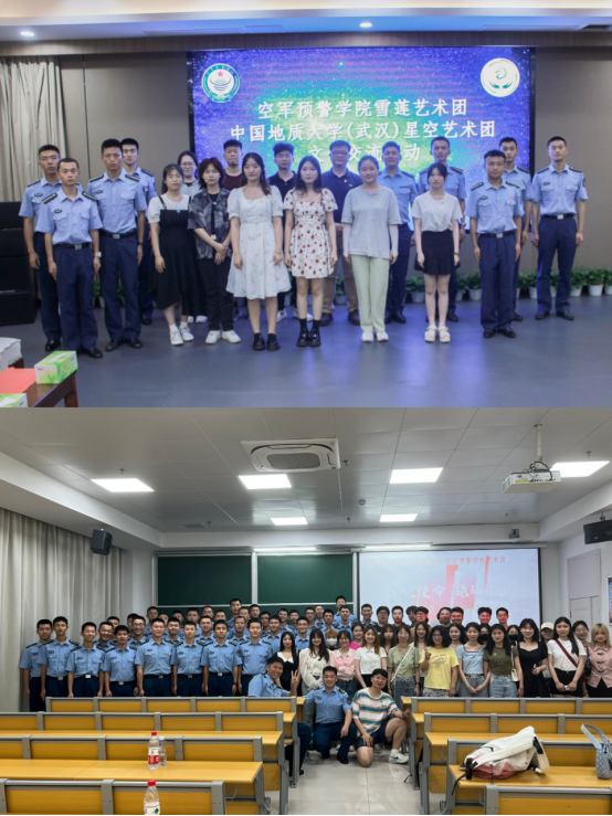与此同时,在空军预警学院实验楼103教室中,公司星空合唱团成员与空军预警学院雪莲合唱团成员正进行着一场别开生面的艺术交流活动。在星空合唱团与雪莲合唱团互相为对方演唱了合唱歌曲后,同学们纷纷跃上讲台倾情献唱、教授歌唱技巧、传授表演经验,教室中歌声、欢笑声经久不息、掌声如雷贯耳。