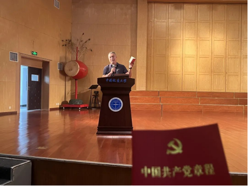 “我志愿加入中国共产党……”在恢弘的重温入党誓词声中,本次全体学生党员大会拉开序幕,学院党委副书边建华为与会学生讲授主题为“学党章,悟思想,做合格党员”的党课。